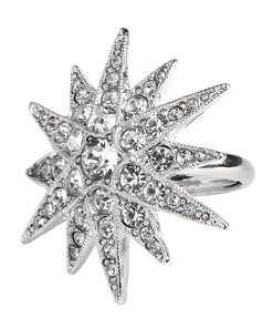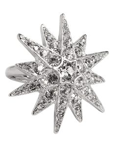 Kenneth Jay Lane Jewelry Silver & Crystal Flared Star Ring | Silver & Crystal