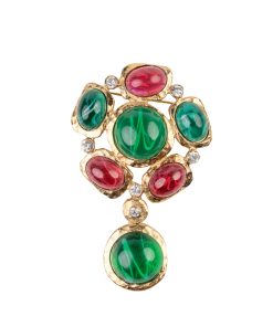 Kenneth Jay Lane Jewelry Pins/brooches Gold And Crystal Gem Cluster Pin | Emerald & Ruby