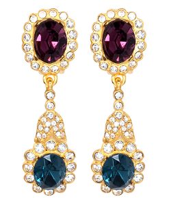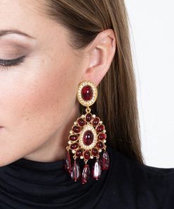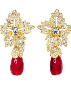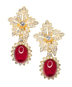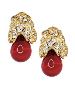 Kenneth Jay Lane Jewelry Gold Crystal Flower Top Ruby Teardrop Clip Earrings | Ruby & Gold