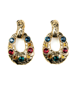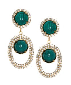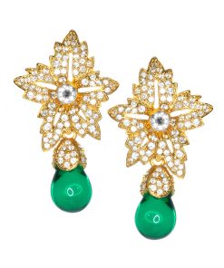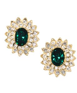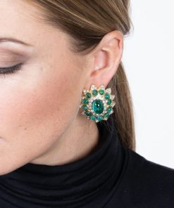 Kenneth Jay Lane Jewelry Gold And Crystal Setting Emerald Stone Center Clip Earring | Gold & Emerald