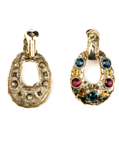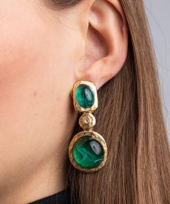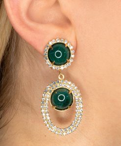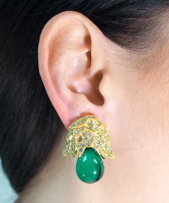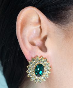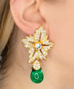 Kenneth Jay Lane Jewelry Gold And Crystal Setting Emerald Stone Center Clip Earring | Gold & Emerald