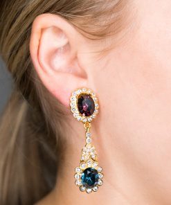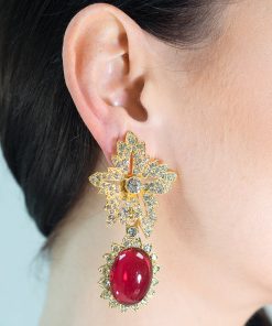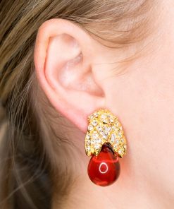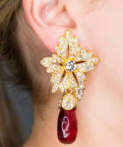 Kenneth Jay Lane Jewelry Gold Crystal Flower Top Ruby Teardrop Clip Earrings | Ruby & Gold