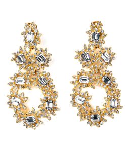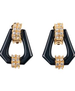 Kenneth Jay Lane Jewelry Gold And Crystal Hexagon Drop Clip Earring | Gold & Crystal & Black