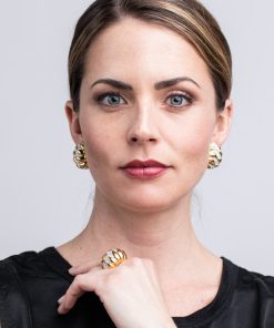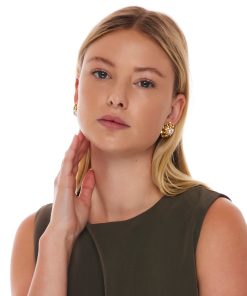 Kenneth Jay Lane Jewelry Gold And Crystal Setting Emerald Stone Center Clip Earring | Gold & Emerald