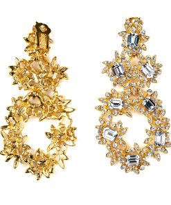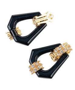 Kenneth Jay Lane Jewelry Gold And Crystal Hexagon Drop Clip Earring | Gold & Crystal & Black