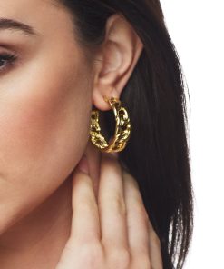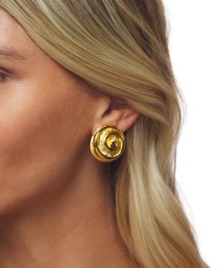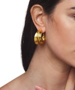 Kenneth Jay Lane Jewelry Gold Hoop Post Earring With Turquoise Cabochons | Gold & Turquoise