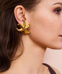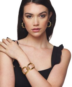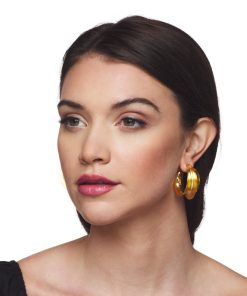 Kenneth Jay Lane Jewelry Gold Hoop Post Earring With Turquoise Cabochons | Gold & Turquoise