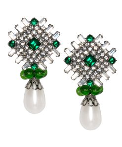 Kenneth Jay Lane Jewelry Emerald And White Pearl Drop Clip Earrings | Emerald & White Pearl