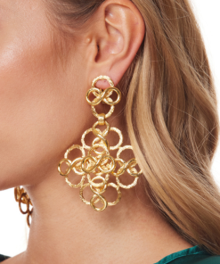 Kenneth Jay Lane Jewelry Emerald Filigree Clip Earrings | Antique Gold & Flaw Emerald