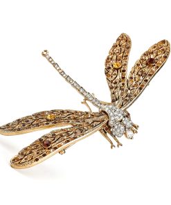 Kenneth Jay Lane Jewelry Pins/brooches Topaz Dragonfly Pin | Light Antique Gold & Multi Topaz