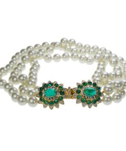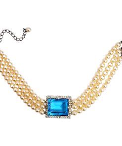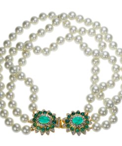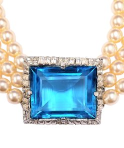 Kenneth Jay Lane Jewelry Vintage Cultura Pearl Necklace With Aqua Stone Center | Pearl & Aqua