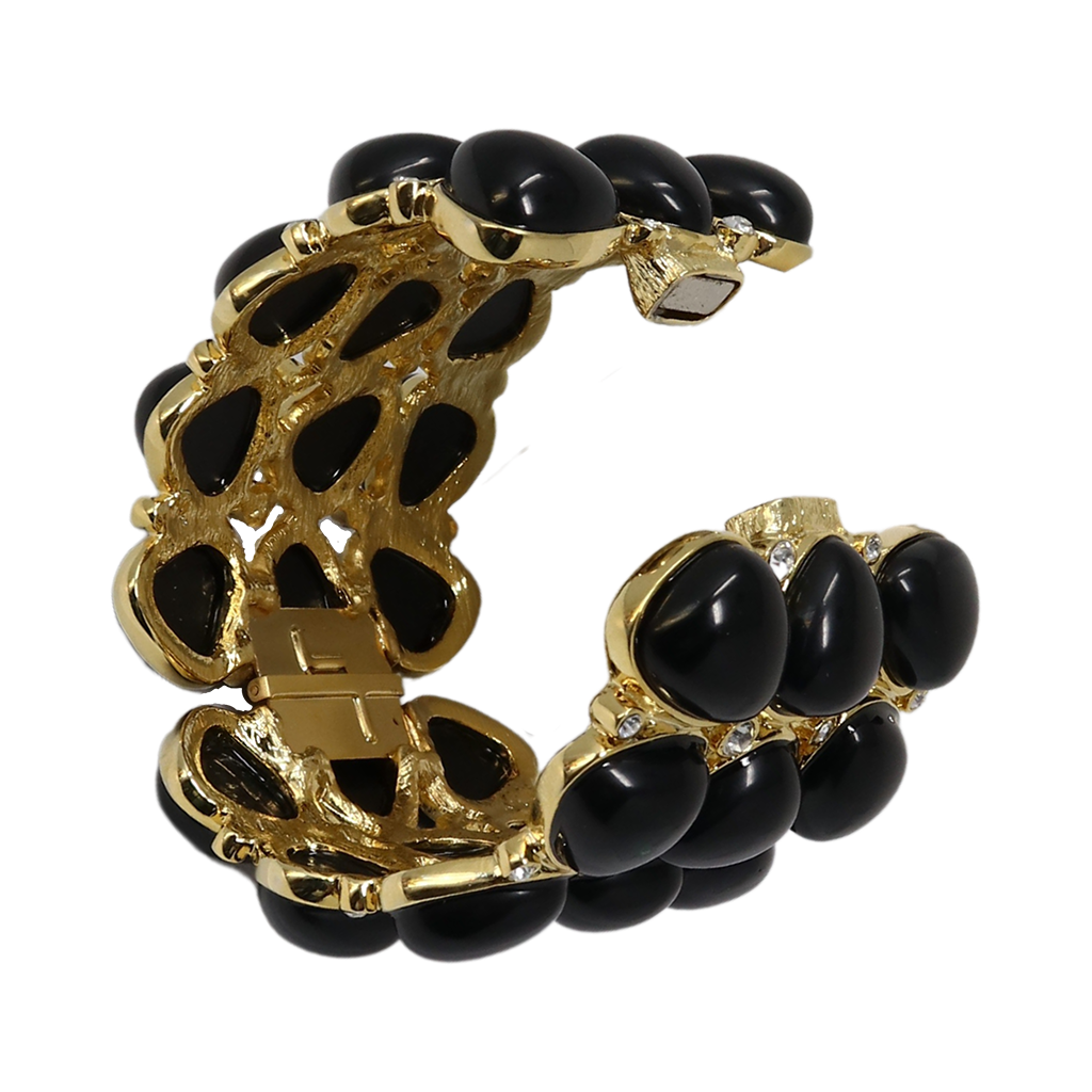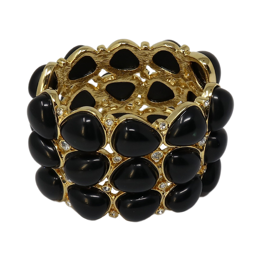 Kenneth Jay Lane Jewelry 3 Row Gold Black Rounded Bracelet | Black & Crystal