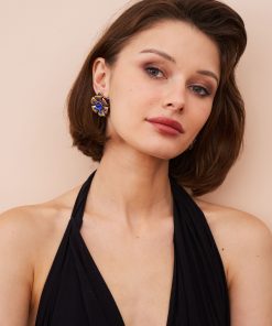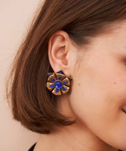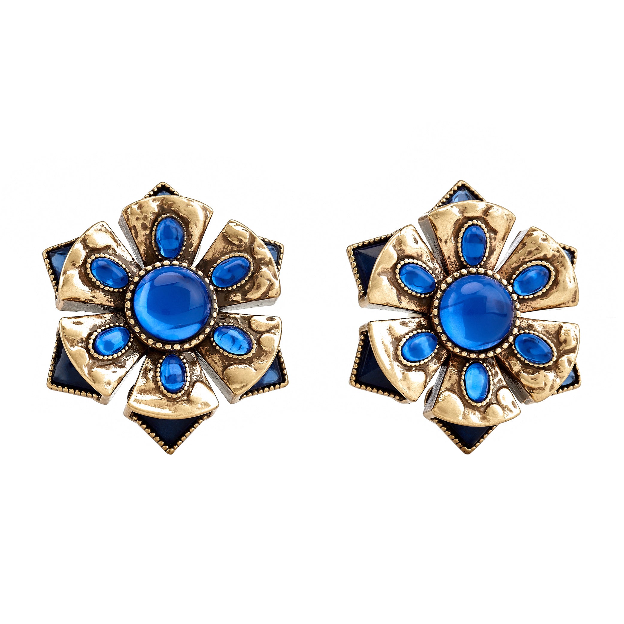 Elegant and timeless, these antique gold post earrings feature stunning sapphire cabochon centers for a sophisticated touch.