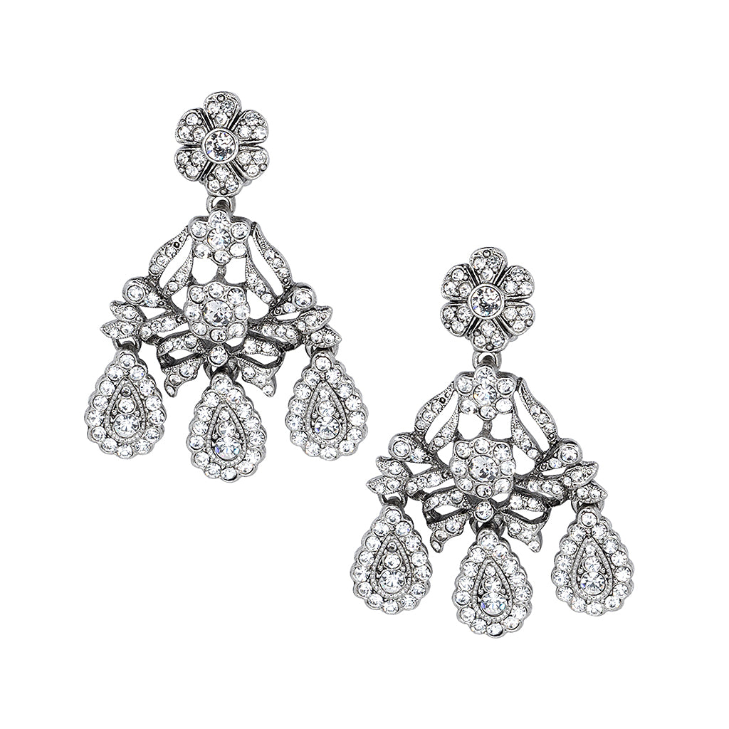 Our antique silver-plated and glass crystal triple drop earrings are red carpet worthy.