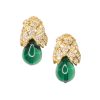 Mrs. Bush would often buy this gold and sapphire earrings with amatching pearl and sapphire clasp necklace. She would be photographed wearing them, and then sign the enlarged framed picture before donating both the picture and the jewelry. The set once sold at a charity auction for $10,000.