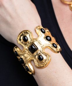 Boldly sized, this tribal gold cuff bracelet is both sophisticated and statement making.