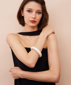 Clean and elegant, this round chalk white resin bangle offers a minimalist yet stylish accent to any ensemble.