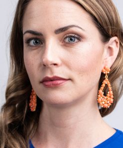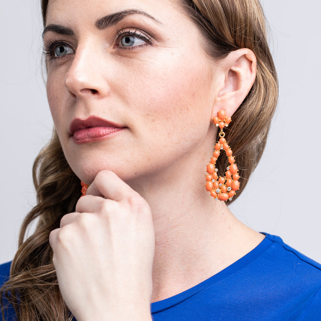 Add elegant intrigue to day or night looks with these dramatic earrings that are crafted into teardrops with coral cabochons.