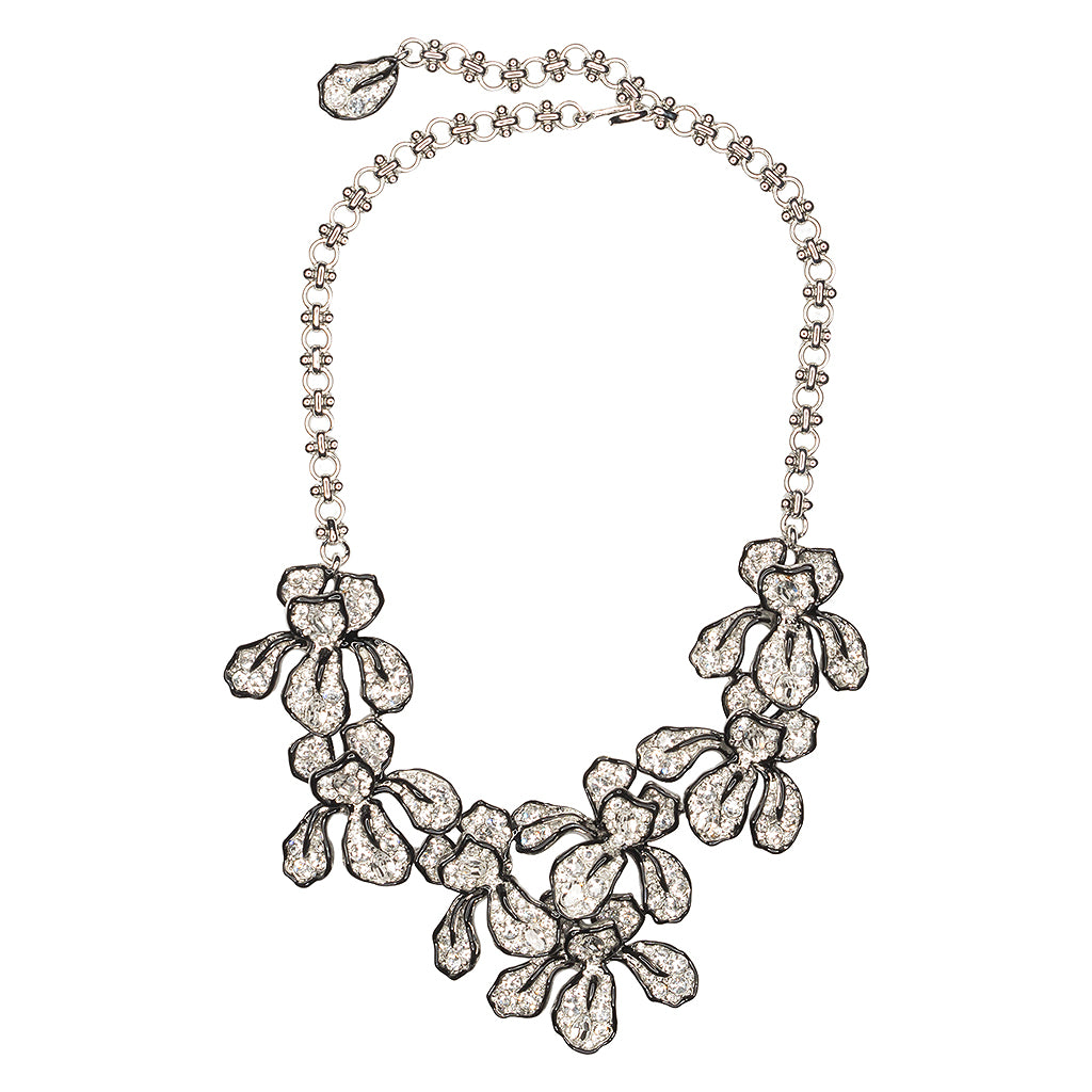 Kenneth Jay Lane Jewelry Crystal Flower Necklace | Black Line