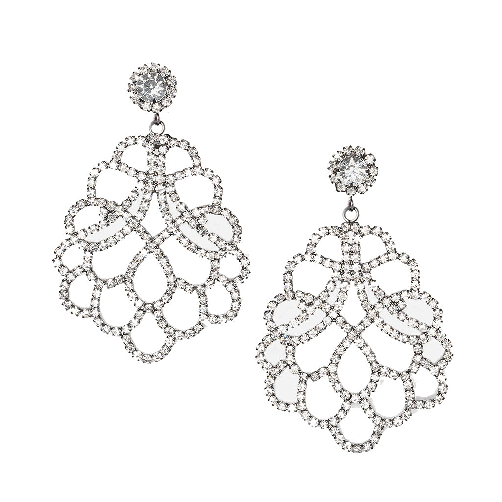 Search no longer for your something new! Get these gunmetal plated crystal lace drop clip earrings as featured in Bride magazine.