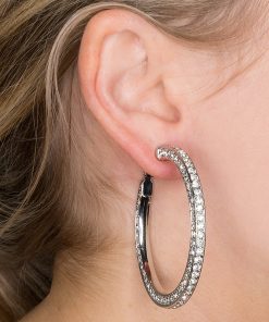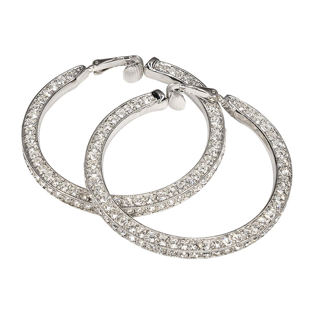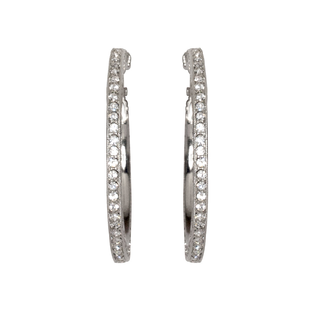 Our rhodium-plated hoop earrings sparkle and shine with glass crystals, and will be the talk of the party at your next event!
