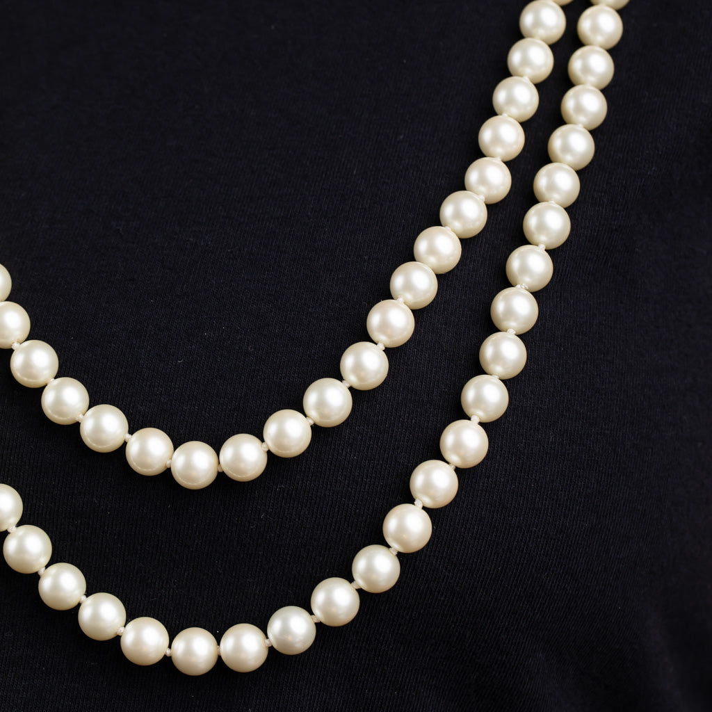 This quintessential pearl necklace is versatile in length – double or wear as a single strand. Featured in Vogue China/August 2019