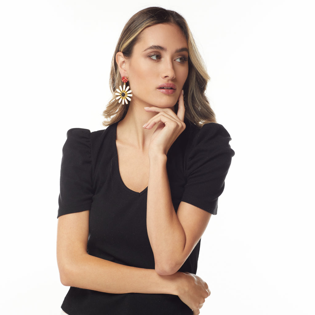 Kenneth Jay Lane Jewelry Daisy & Ladybug Earring | Gold & White & Yellow & Black