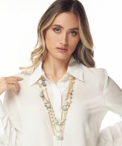 Kenneth Jay Lane Jewelry Gold, Amazonite & Pearl Link Necklace | Gold & White & Amazonite & Pearl