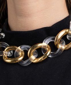 Kenneth Jay Lane Jewelry Polished Gold With Resin Clear Links Necklace | Polished Gold & Clear