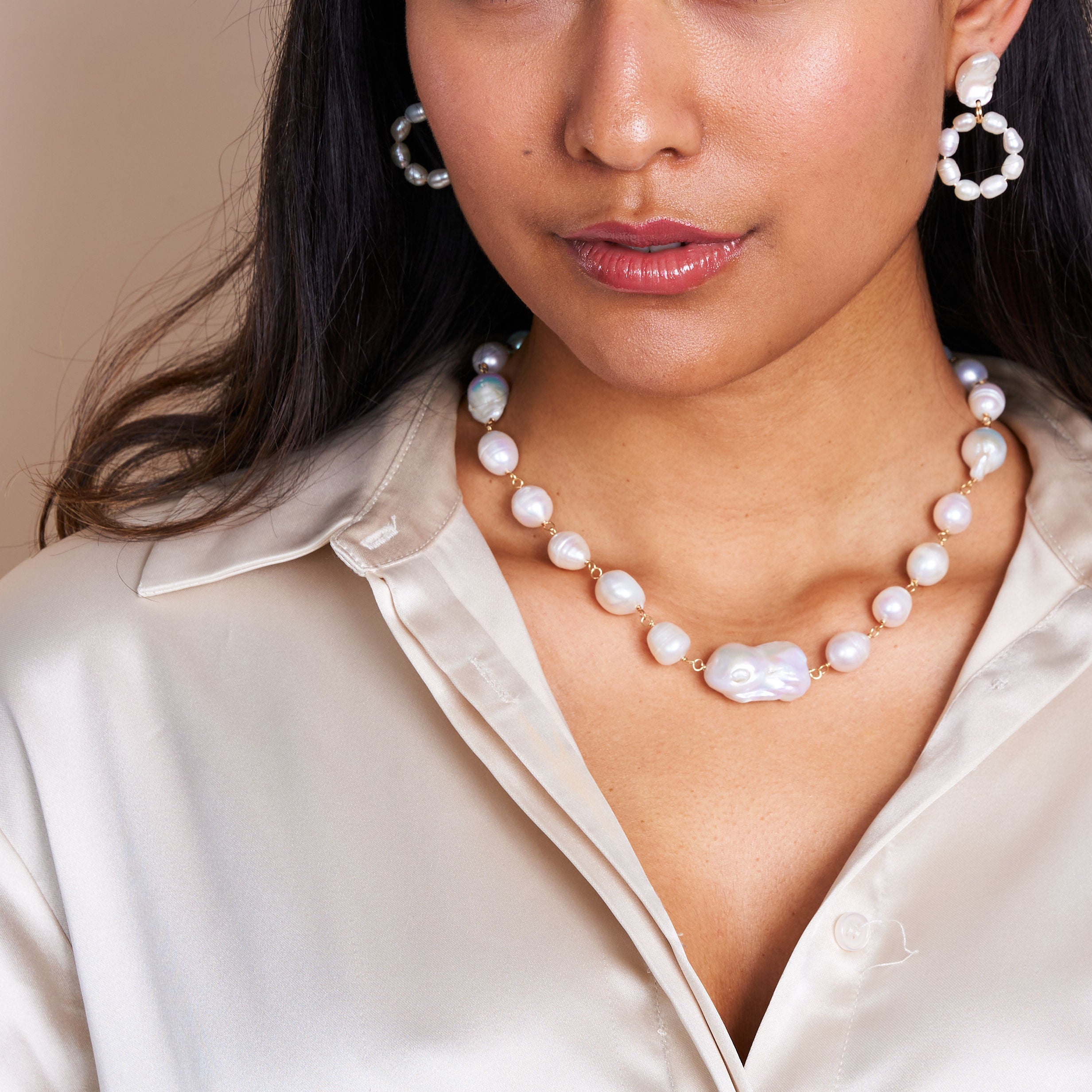 Kenneth Jay Lane Jewelry Freshwater Pearl & Gold Necklace | Polished Gold & Pearl