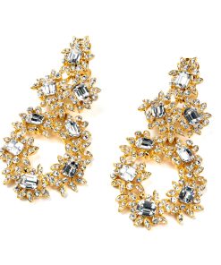 These stunning gold-plated, rhinestone-adorned flower drop clip-on earrings are the perfect accessory for any formal occasion.