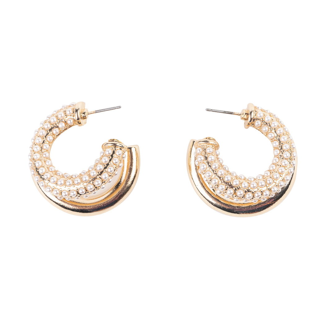 These dazzling gold and pearl double hoop earrings are perfect for any occasion.