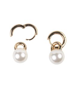 Add these gold hoop earrings featuring a white pearl drop to your collection for a polished touch to any look.