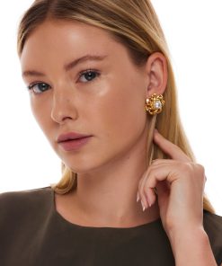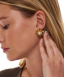 Kenneth Jay Lane Jewelry Gold And Pearl Open Link Flower Pierced Earring | Gold & Pearl