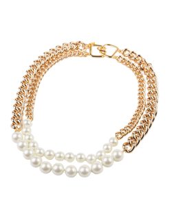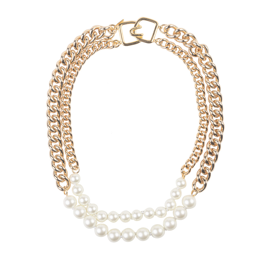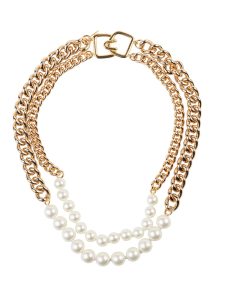 Kenneth Jay Lane Jewelry Link Necklace With Pearl & Gold Charms