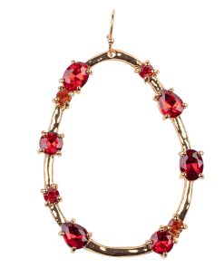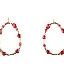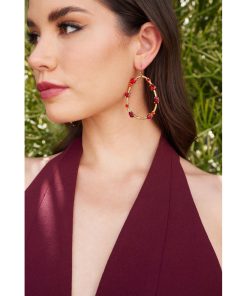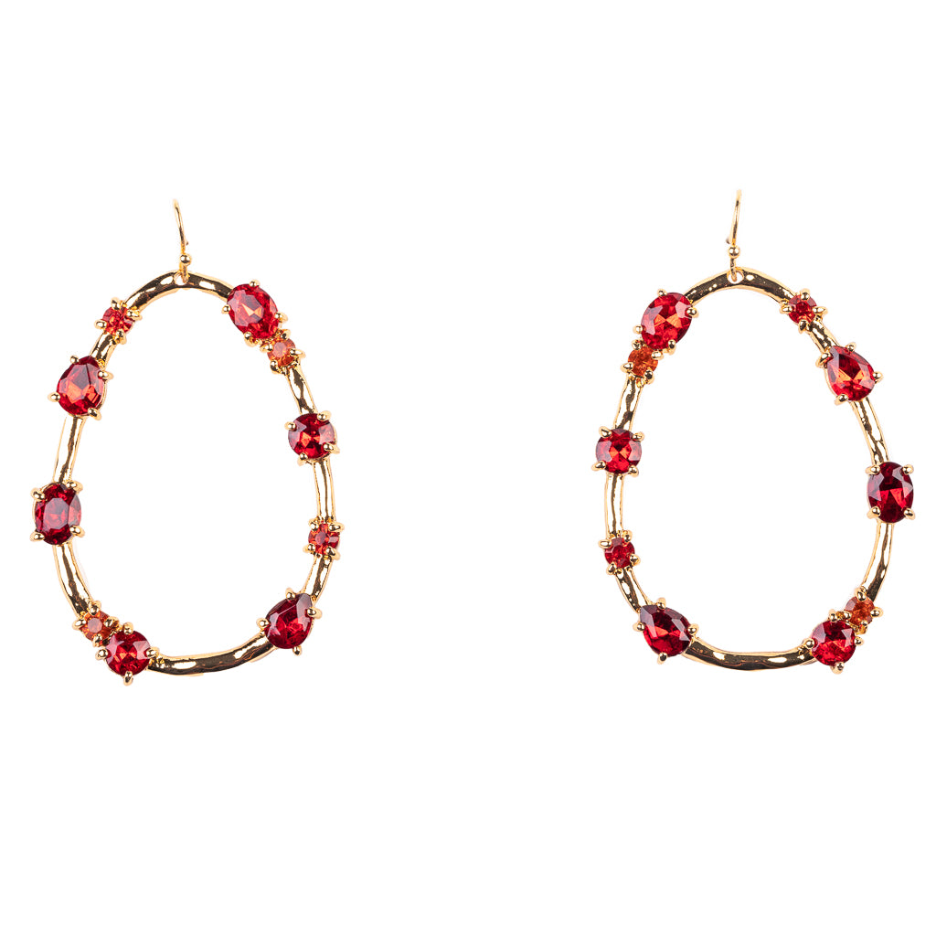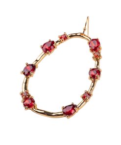 gold oval hoop earrings featuring ruby stone details are the perfect addition to any look.
