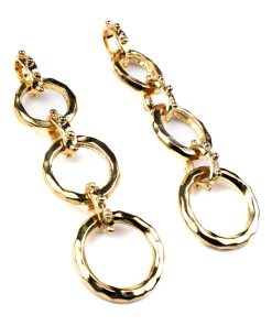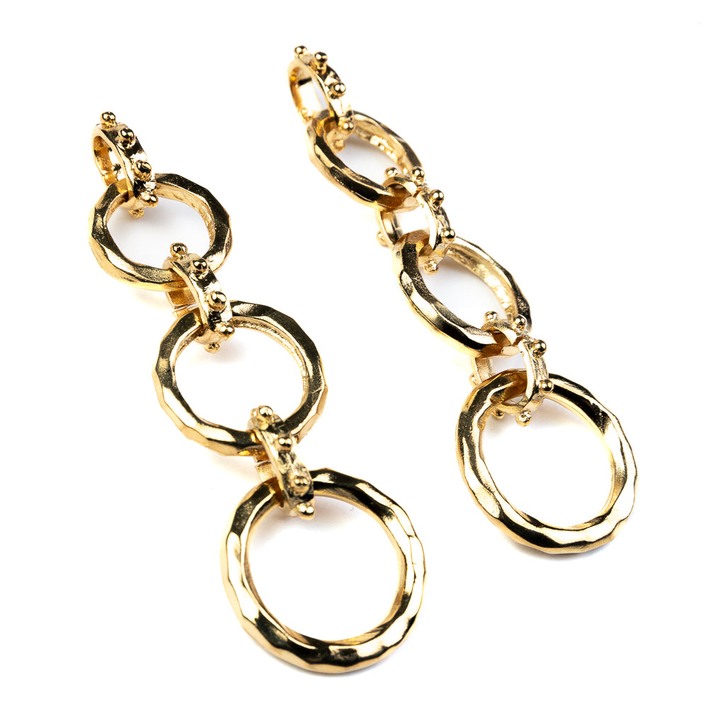 Experience luxury with these classic gold hammered circle drop earrings. Crafted for a timeless aesthetic and perfect for any occasion, these earrings feature small to large circles finely hammered from gold for a shimmering, exclusive finish.