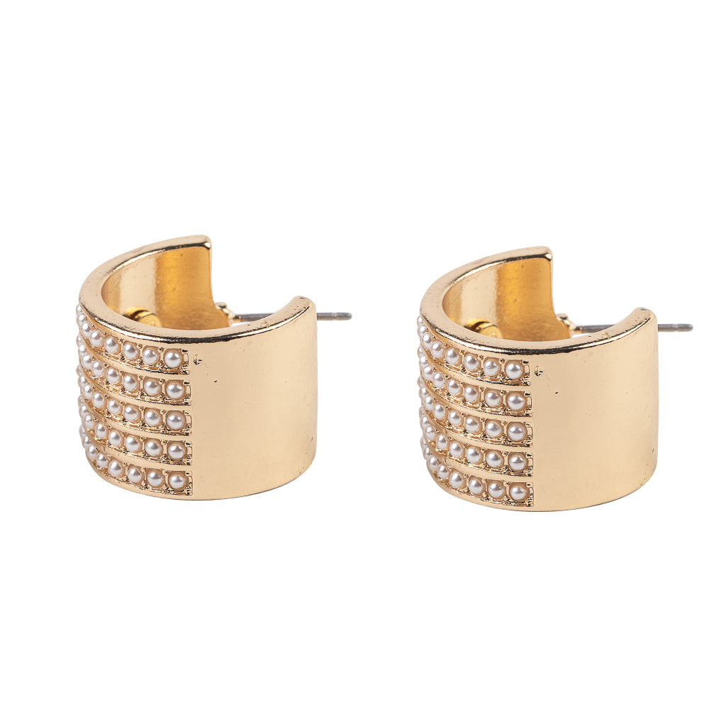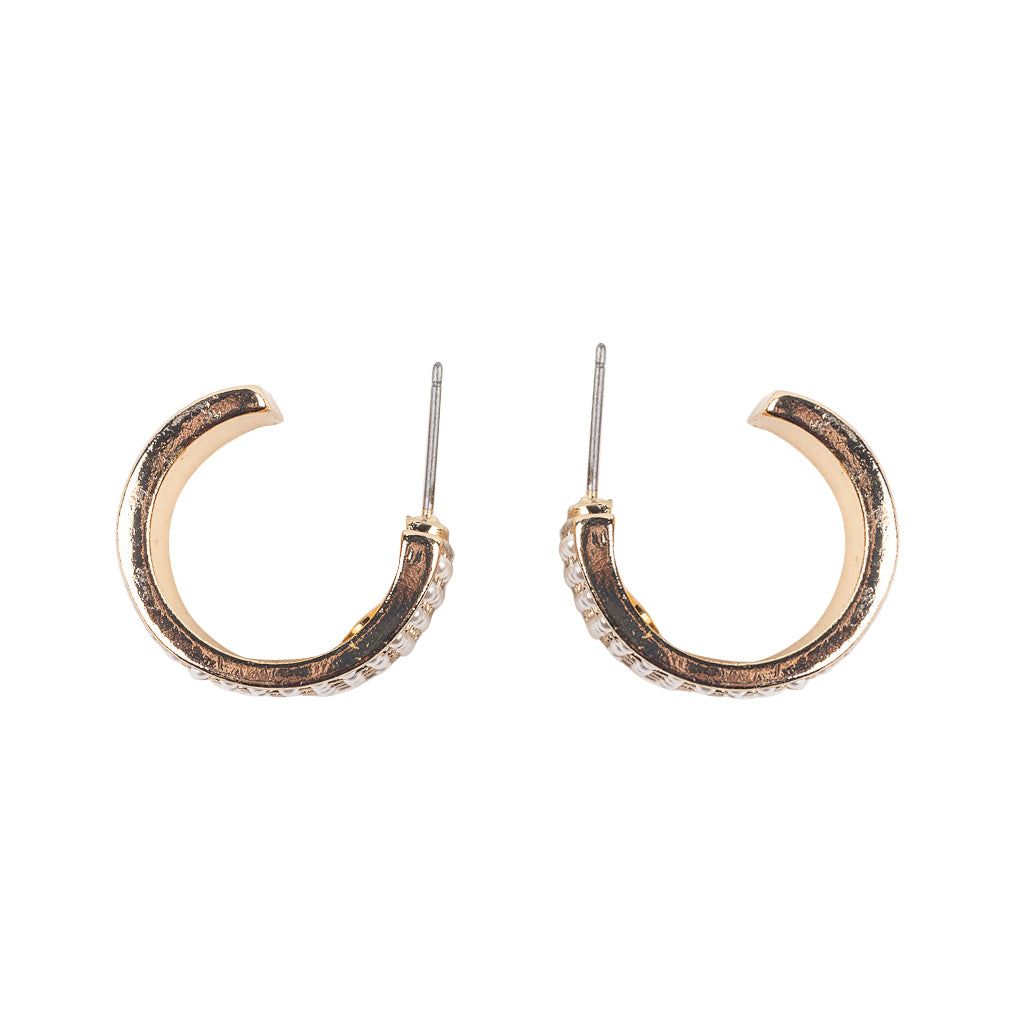 Charming gold hoop studded earrings adorned with pearls to enhance any look.