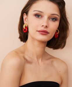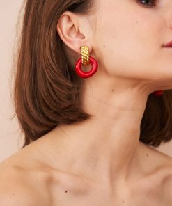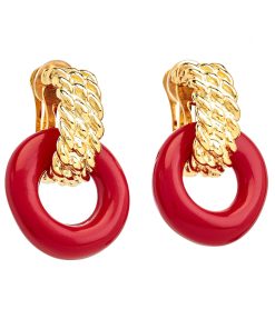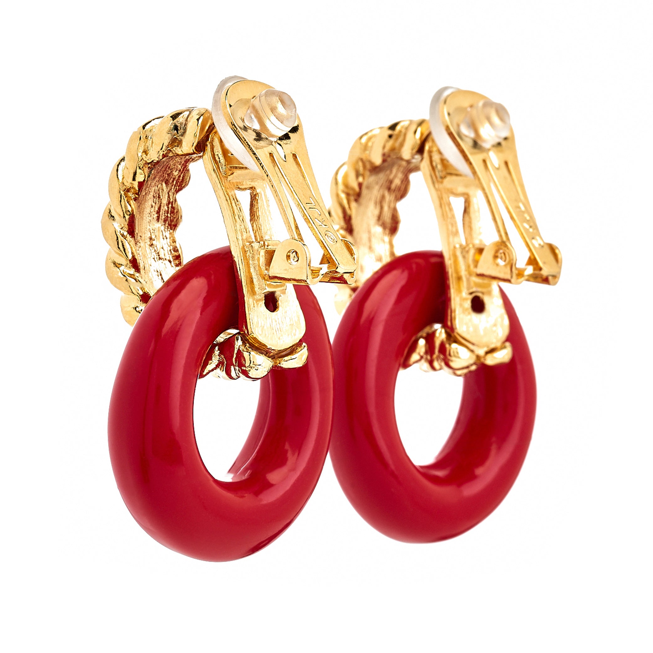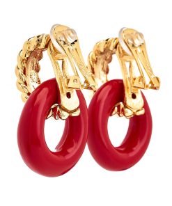 Make a striking statement with these clip-on doorknocker earrings, featuring a gold top and bold red bottom for a vibrant, elegant finish.