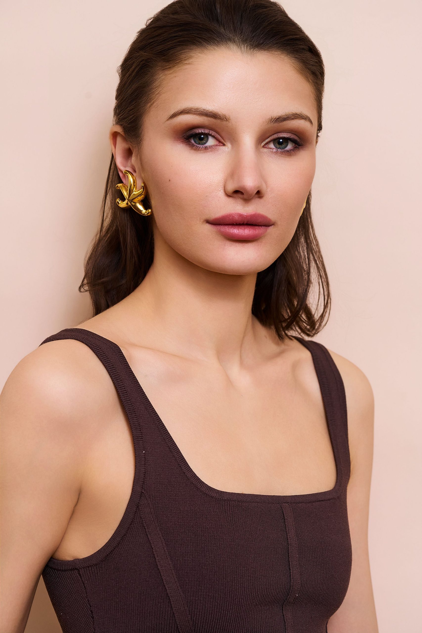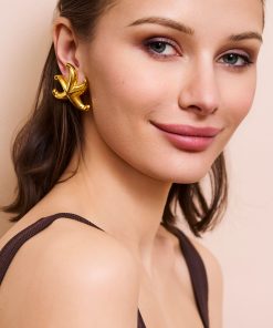 These polished gold starfish-shaped earrings, designed to add a touch of coastal elegance to any look.