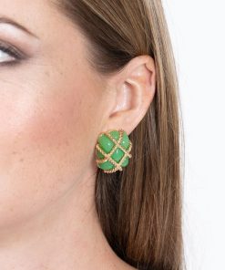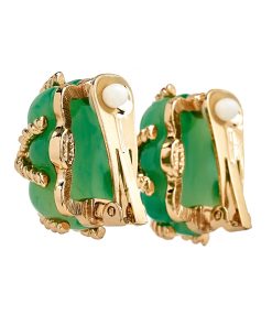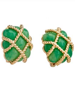 Twists of gold shine on these jade button clip earrings that go great with any look.