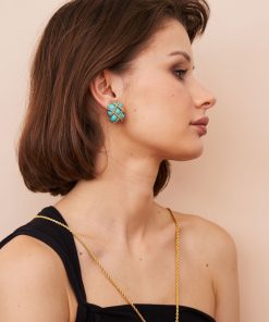 Twists of gold shine on these turquoise button clip earrings that go great with any look.