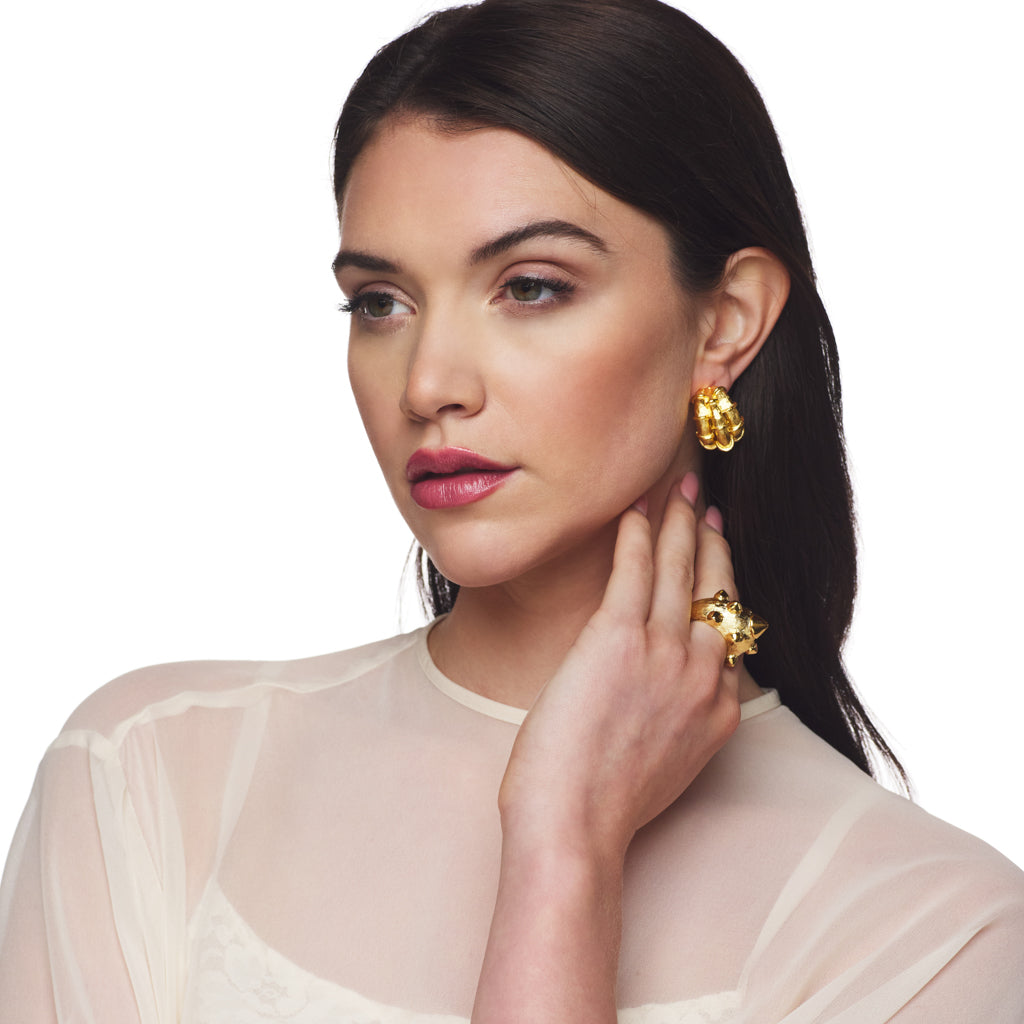 Be the first to review “Kenneth Jay Lane Jewelry Gold Triple Bamboo Hoop Clip Earrings | Satin Gold” Cancel reply