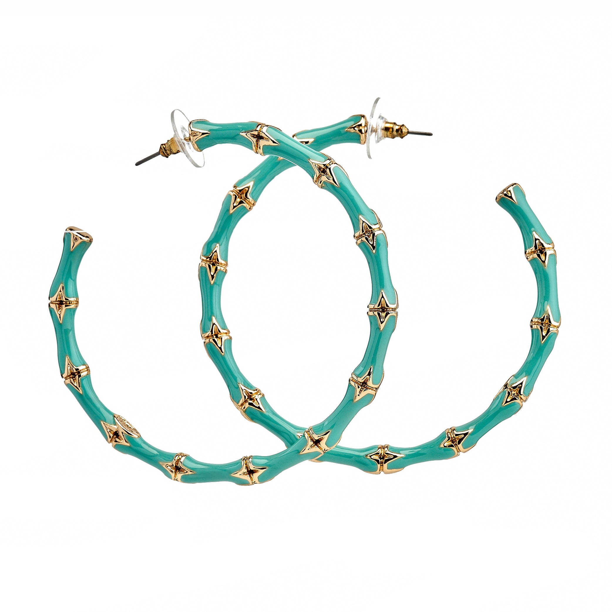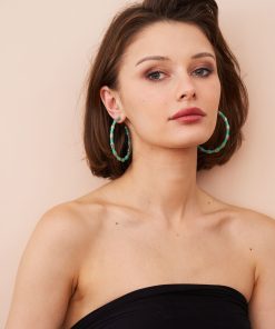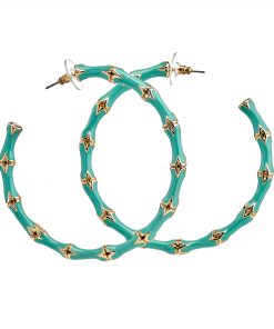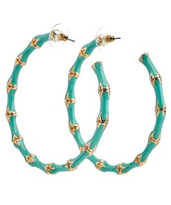 Kenneth Jay Lane Jewelry Large Turquoise Bamboo Hoop Earrings | Turquoise