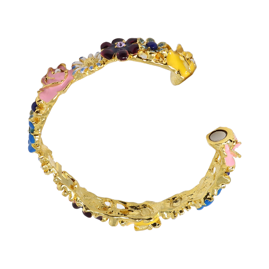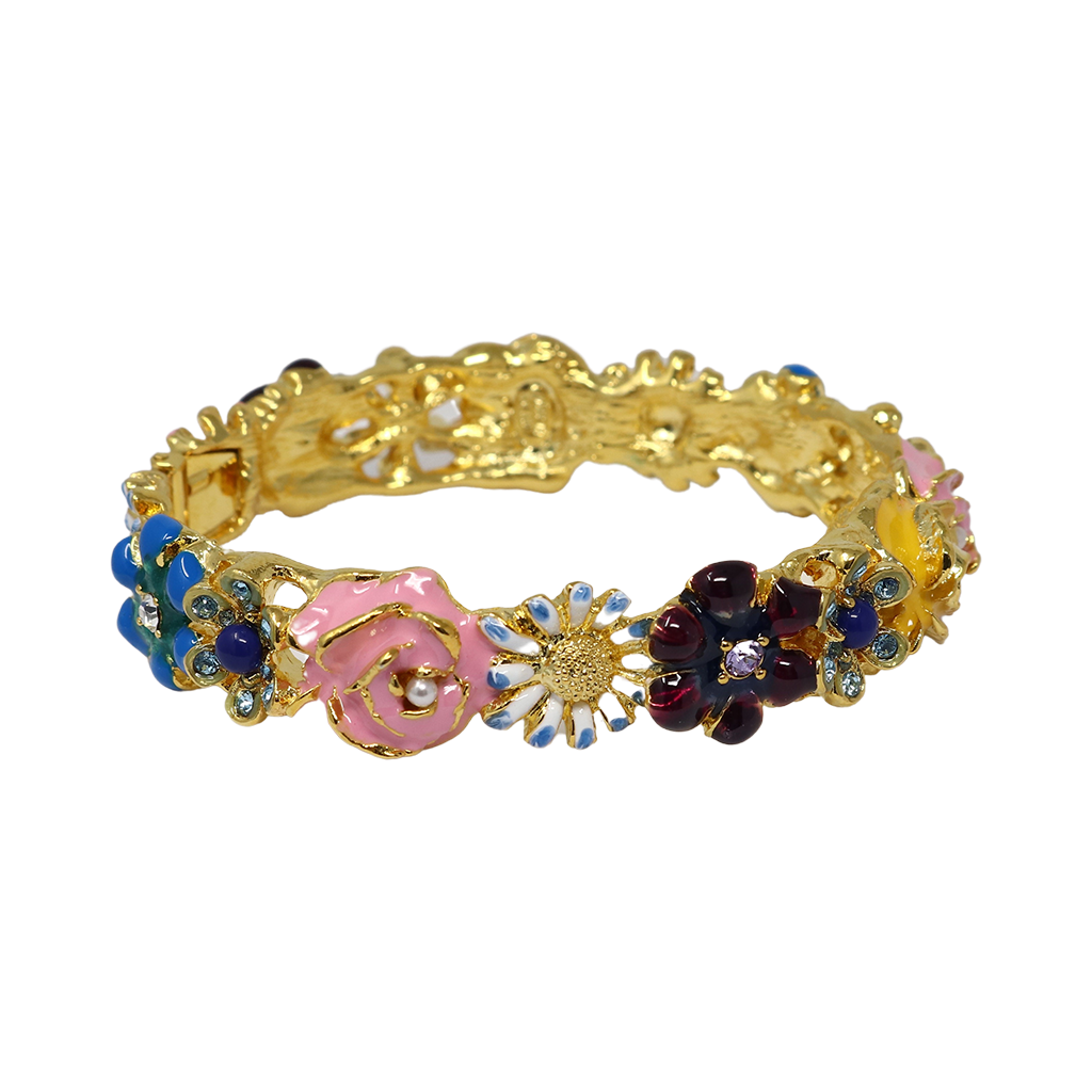 Bloom life into your collection with this multicolored and gold bracelet that features a stunning floral