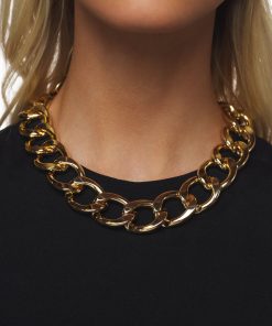 Kenneth Jay Lane Jewelry Polished Gold With Resin Clear Links Necklace | Polished Gold & Clear