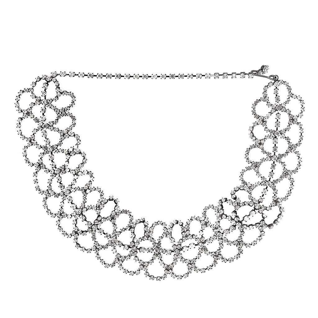 The gunmetal crystal lace choker adjoins edgy architecture to a classy finish. This is a statement piece is stunning as it appears to dress up any outfit.