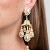 USA-made, these decadent clip-on earrings feature a round, faux white pearl encased in a rhodium-plated, rhinestone love knot twist.