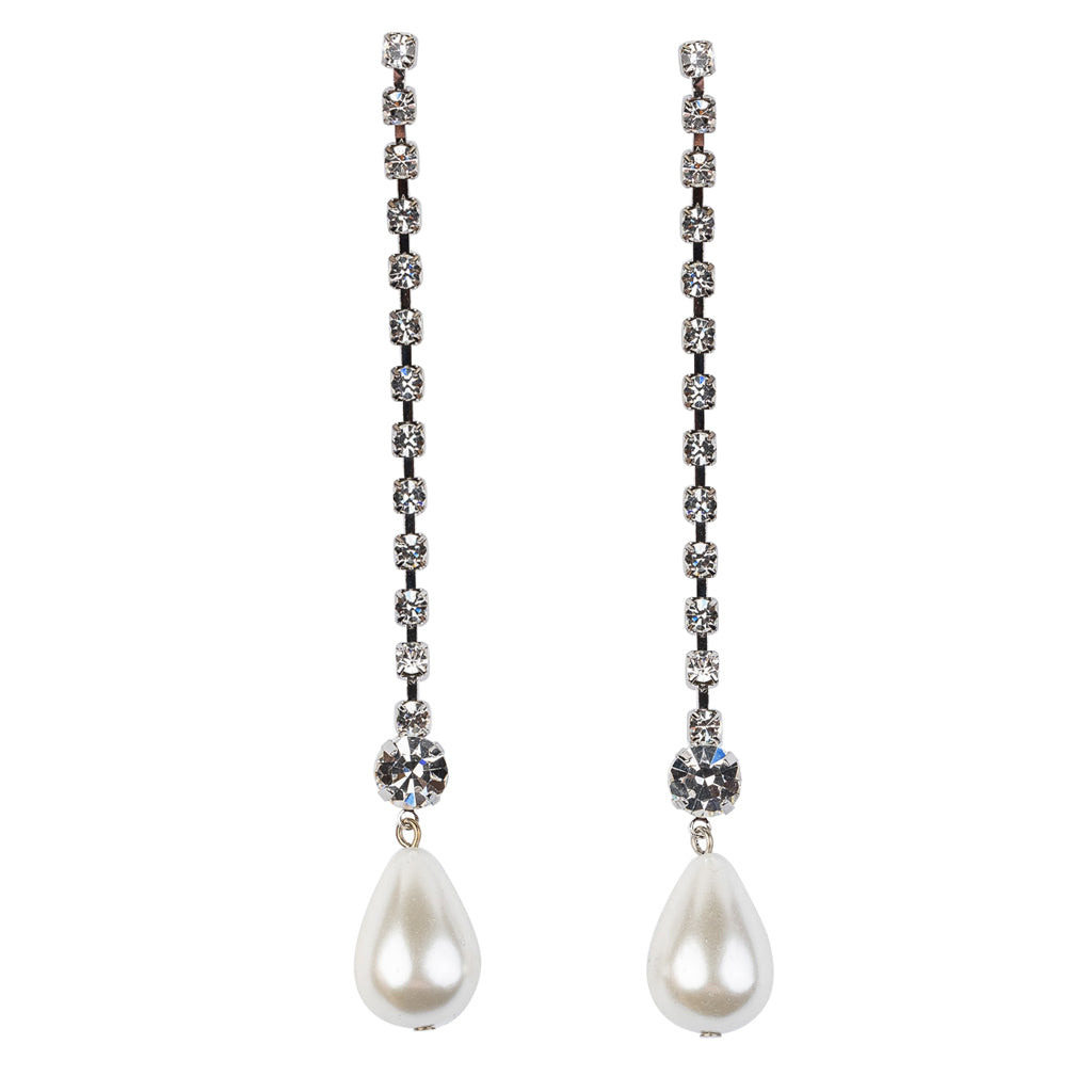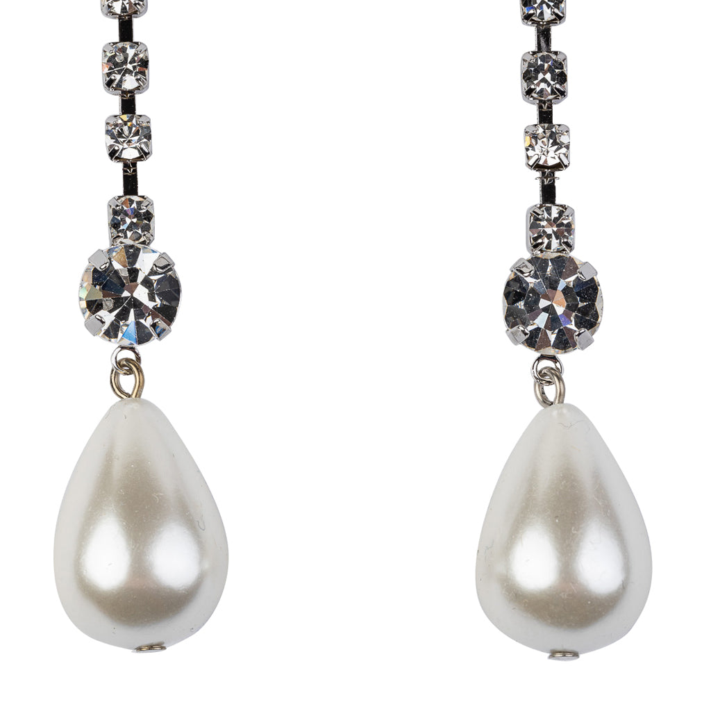 These lovely rhinestone drop pierced earrings are finished with a decadent teardrop-shaped faux pearl.