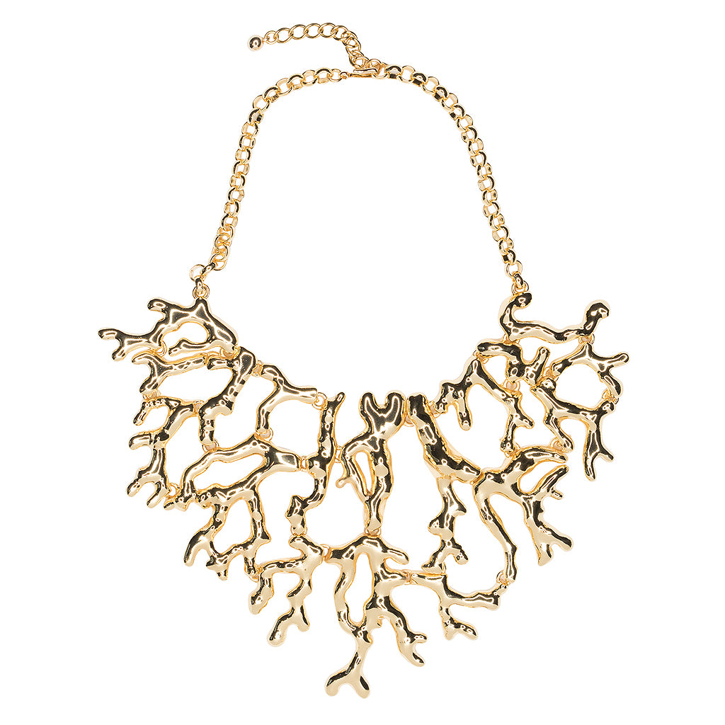 Kenneth Jay Lane Jewelry Polished Gold Coral Branch Necklace | Gold